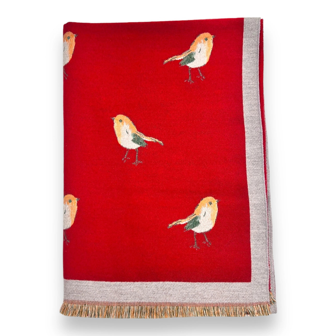 Robin Bird Reversible Scarf Cashmere Mix Red