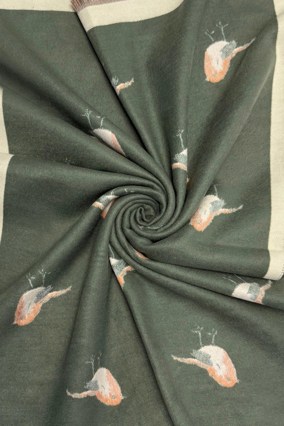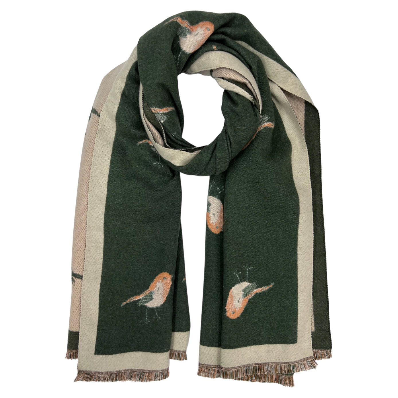 Robin Bird Reversible Scarf Cashmere Mix Green